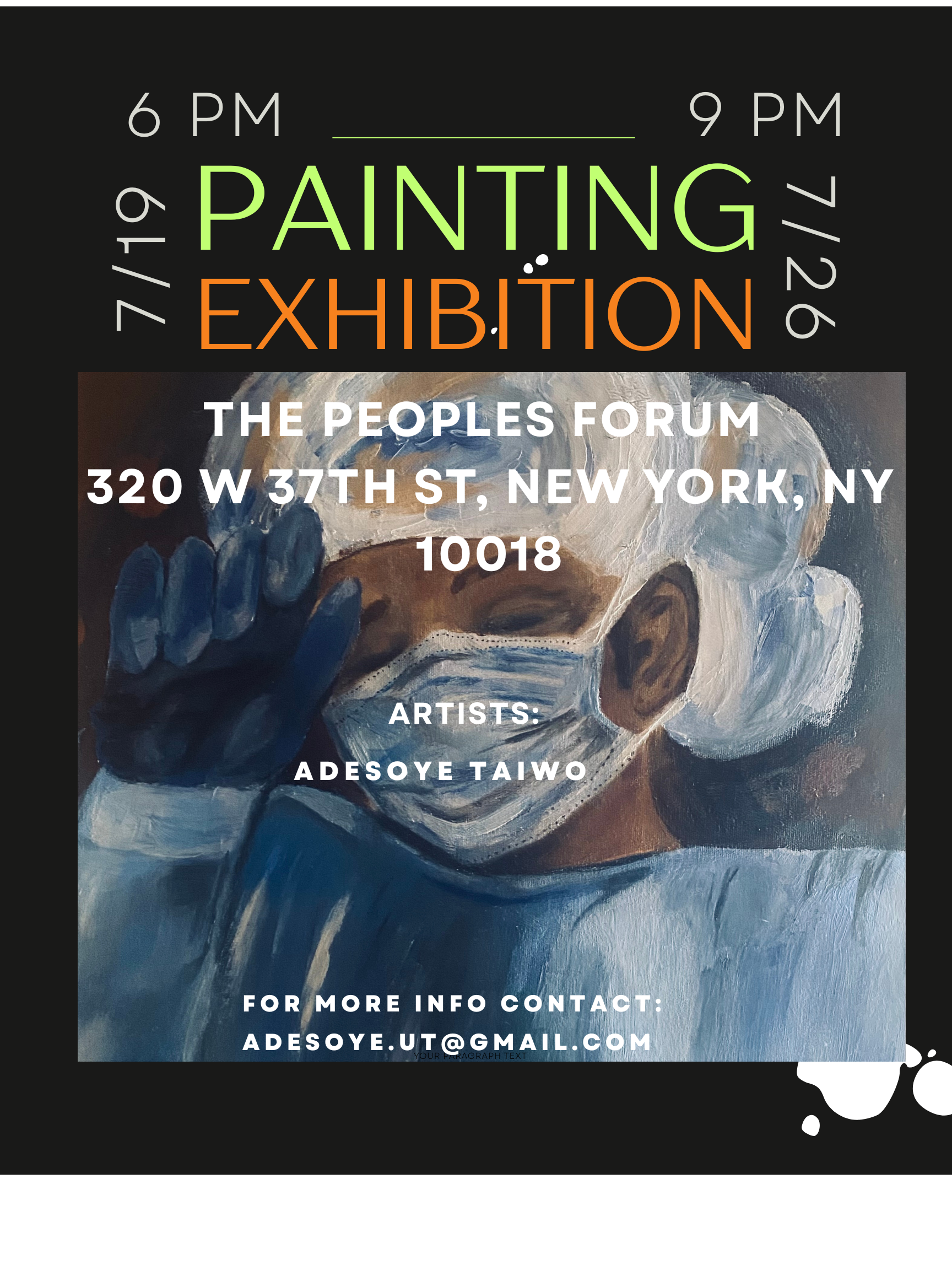 “This piece was inspired by the underrepresentation of Black professionals in medical imagery and the broader depression of Black identity within healthcare settings. The Doctor was created to create visibility and normalize complete Black presence in positions of medical authority and care. Through this portrait, I aim to challenge conventional expectations, affirm identity, and offer a more inclusive vision of who belongs in medicine and more importantly in this context, how they show up.” - Adesoye Taiwo